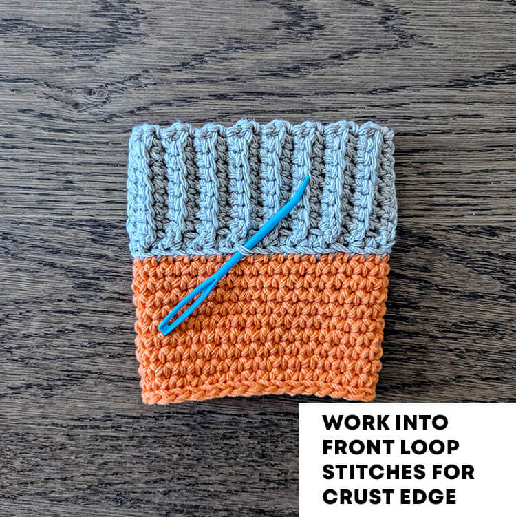 Note: Make a note to yourself that we will be working into the front loops of these sts for the “Crust Edge.”